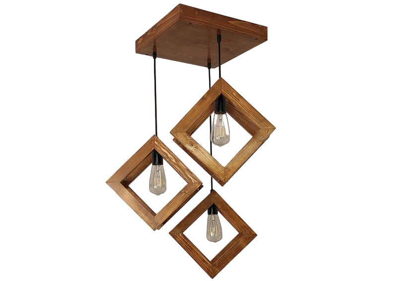 3 Square Fancy Decorative Wooden Hanging Light for Ceiling