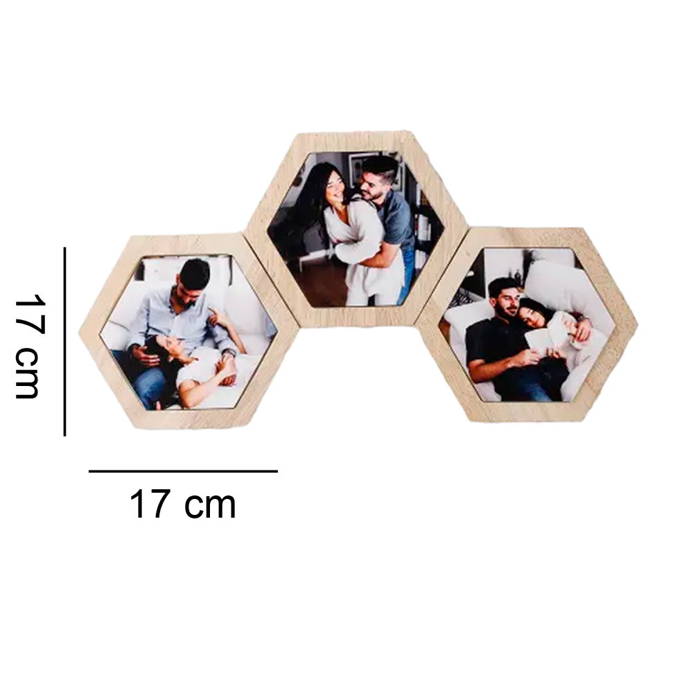 Celebrate the union of two souls with this exquisite wedding gift set. Featuring three hexagonal wooden frames and a stunning acrylic wall decor adorned with the words "Mr. and Mrs.," this collection is a testament to love and unity. Each frame provides a unique space to display cherished memories from the couple's journey together. Personalize these elegant frames with the couple's pictures to make this set the perfect addition to any newlywed's home. Present this thoughtful gift to the happy couple and add a touch of romance to their new life together.