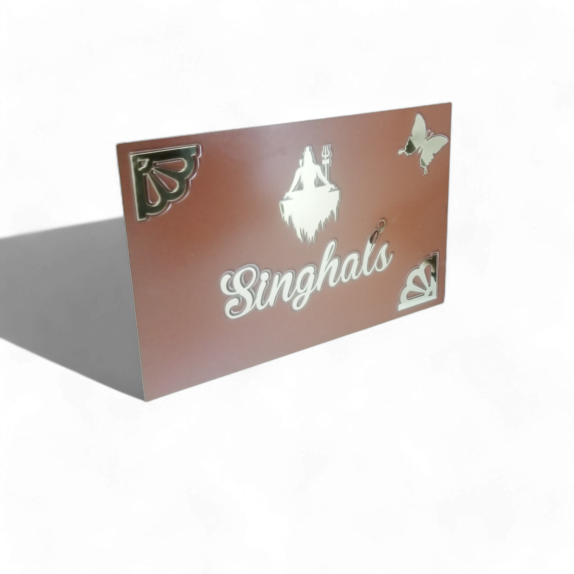 Shinghal's Name Plate For Home / Office Door - Wooden Base with Acrylic Design