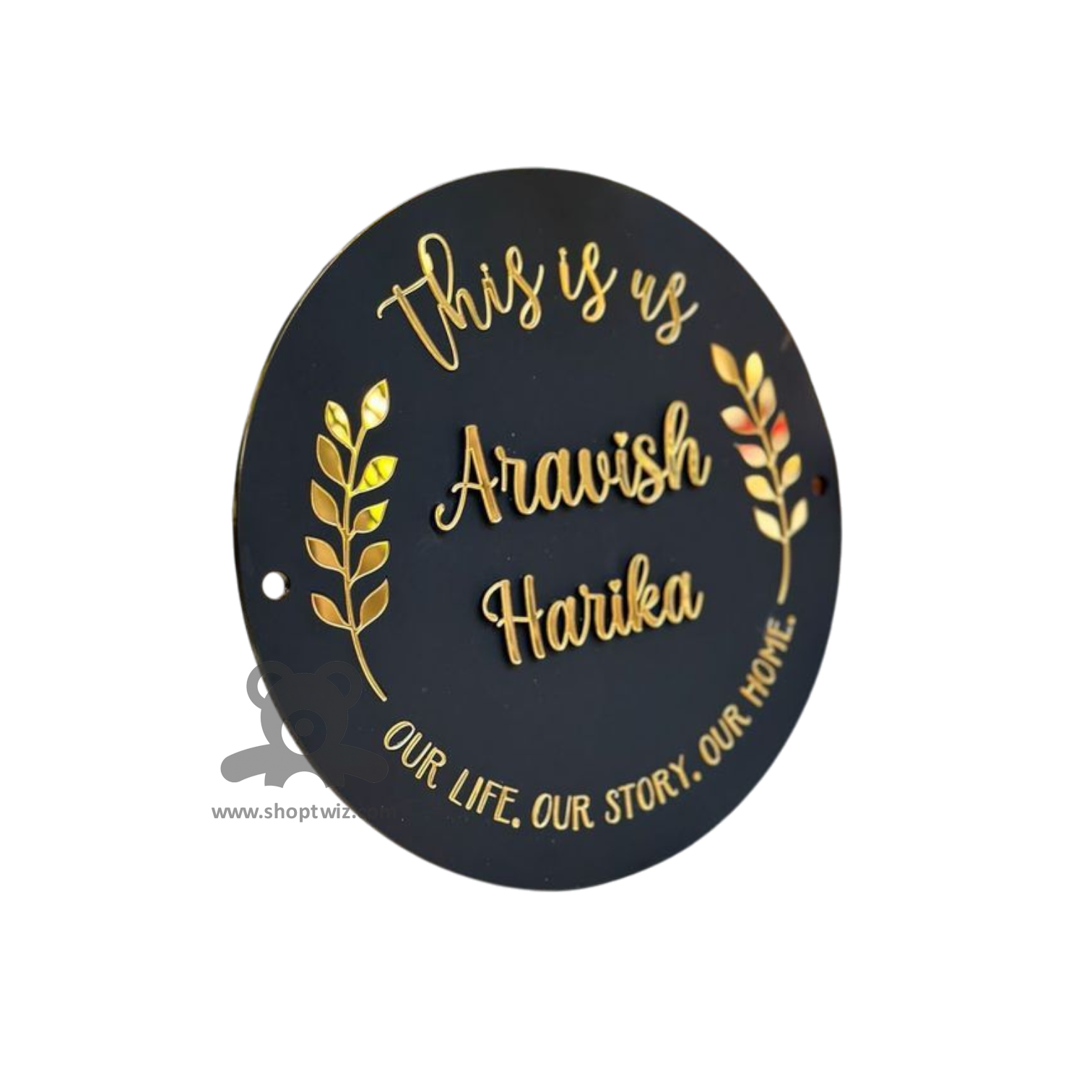 ShopTwiz Circle Black Golden Design And Latter Name Plate for House and Office