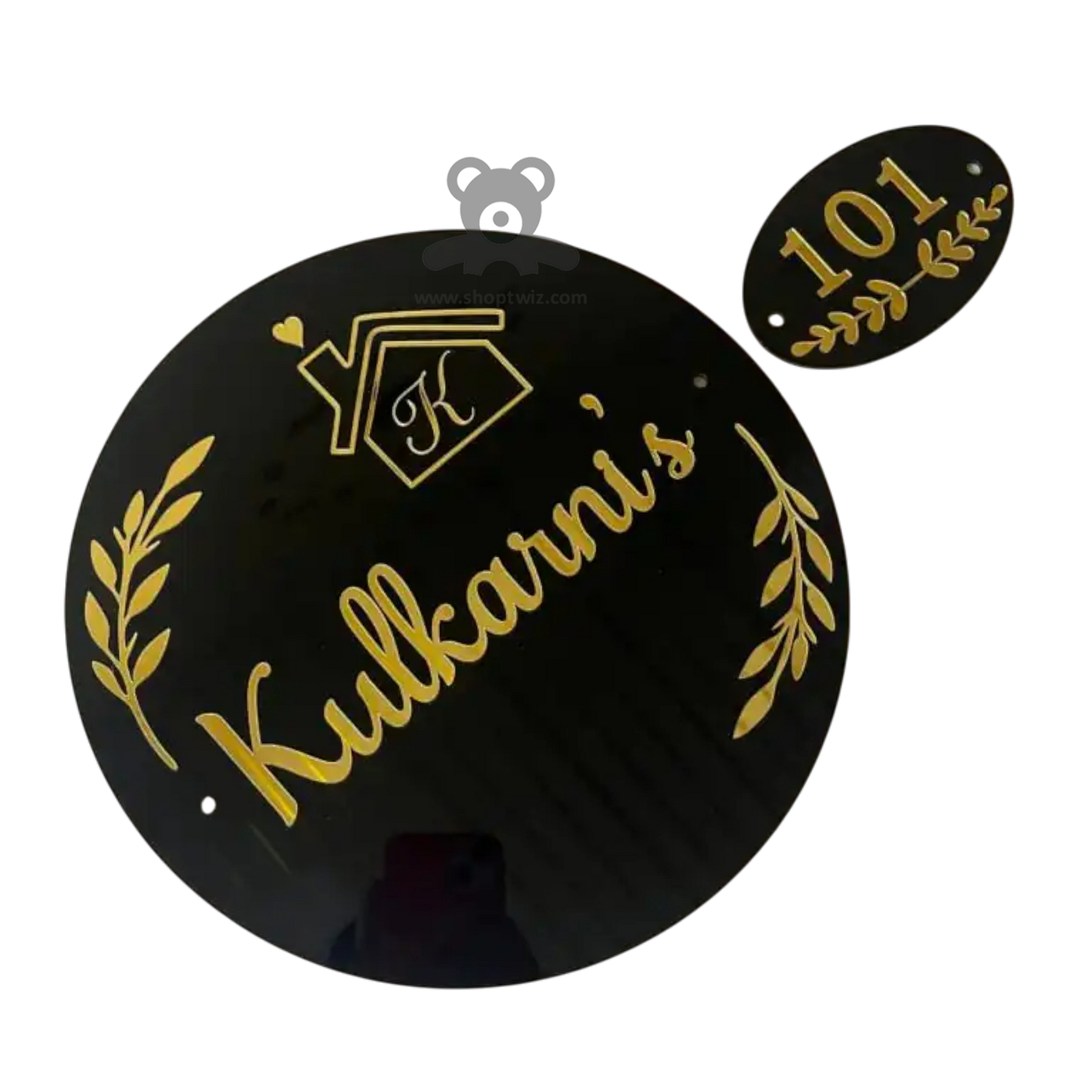 ShopTwiz Circle Black Golden Design and Letter Name Plate for House and Office
