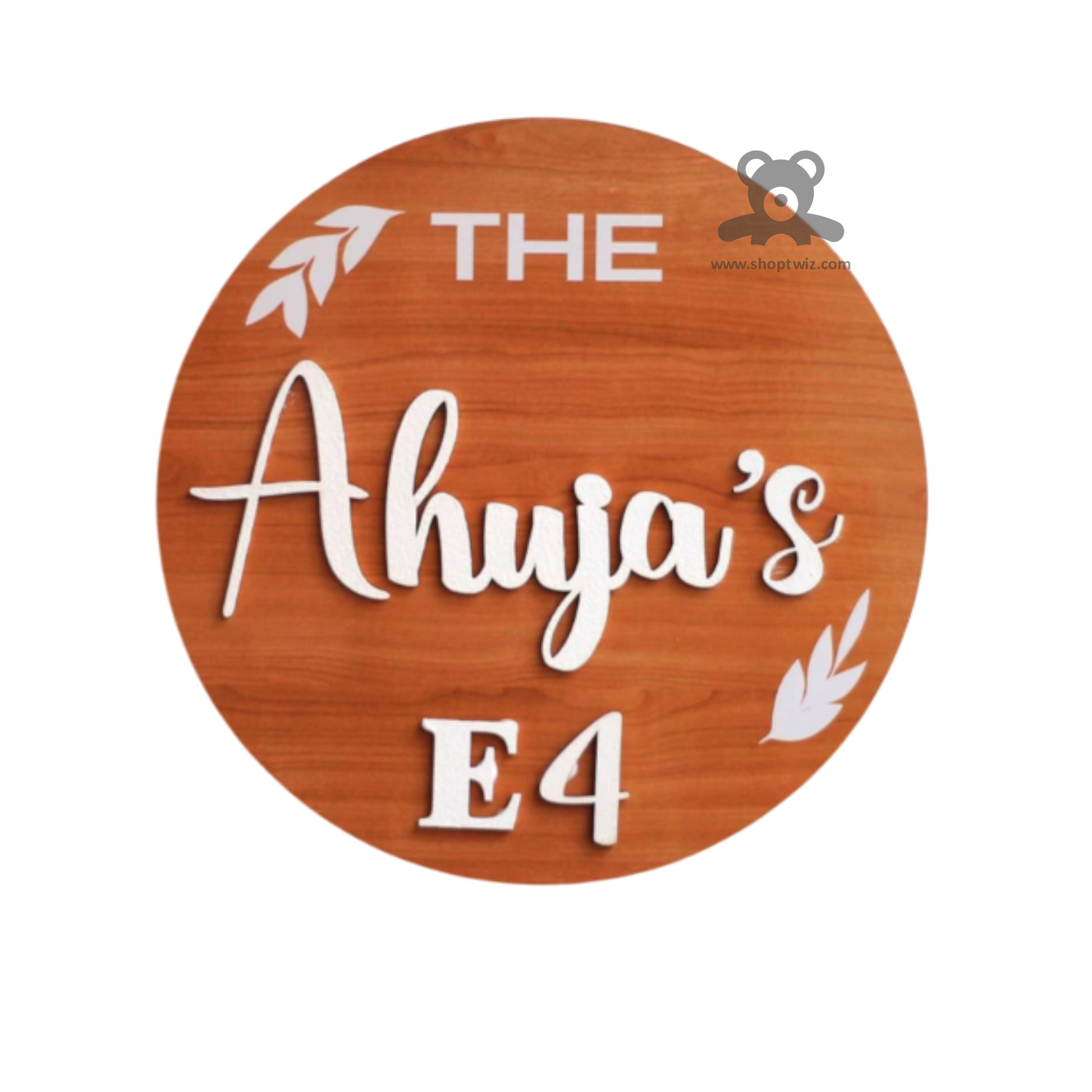 ShopTwiz Circle Wood White Design and Letter Name Plate for House and Office