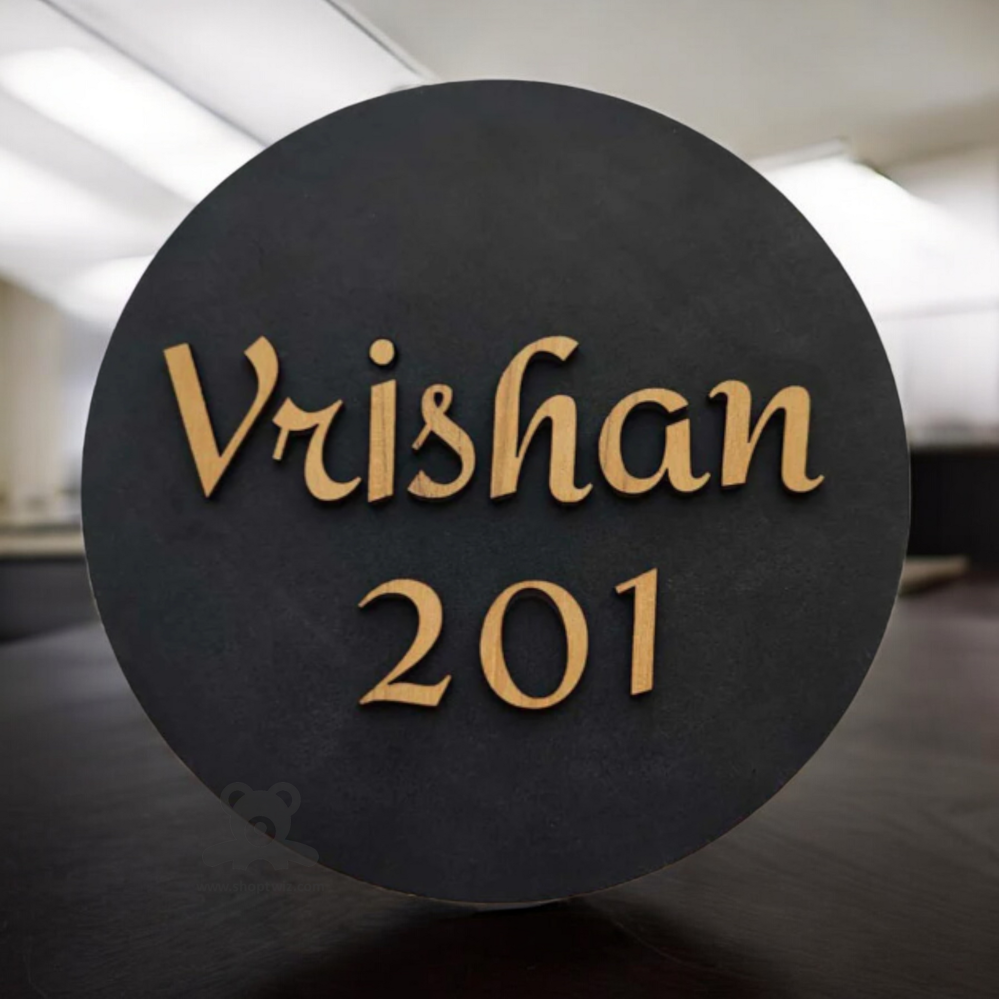 ShopTwiz Circle Z Black Acrylic with Golden Letter Name Plate for House and Office