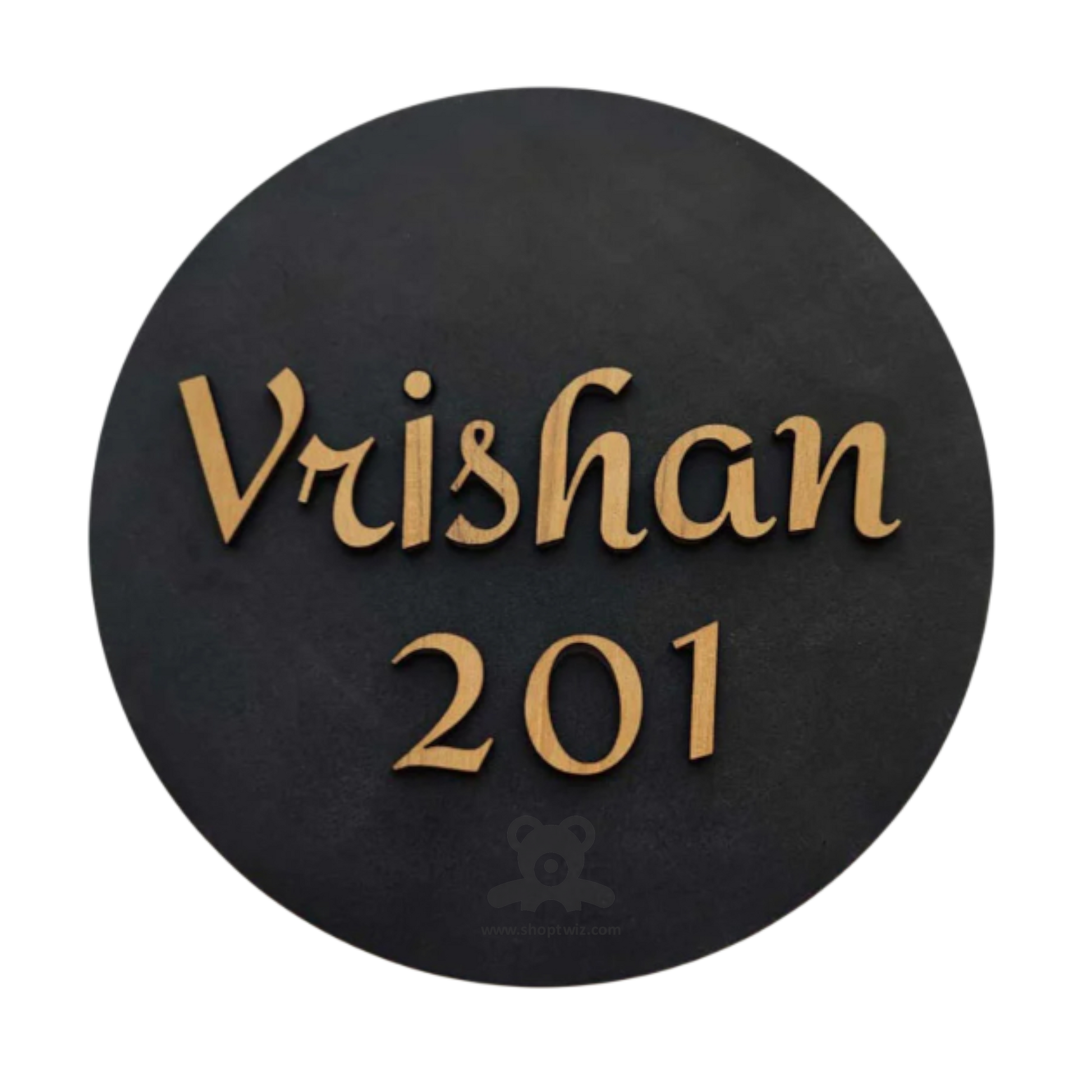 The ShopTwiz Circle Z Black Acrylic Name Plate features a bold black acrylic base accented with elegant golden lettering, offering a sleek and distinguished appearance for homes and offices. Its durable construction ensures lasting clarity, while the circular shape adds a unique and modern touch. Ideal for prominently displaying your name or designation, this name plate combines style and functionality to enhance any entrance with professional sophistication.