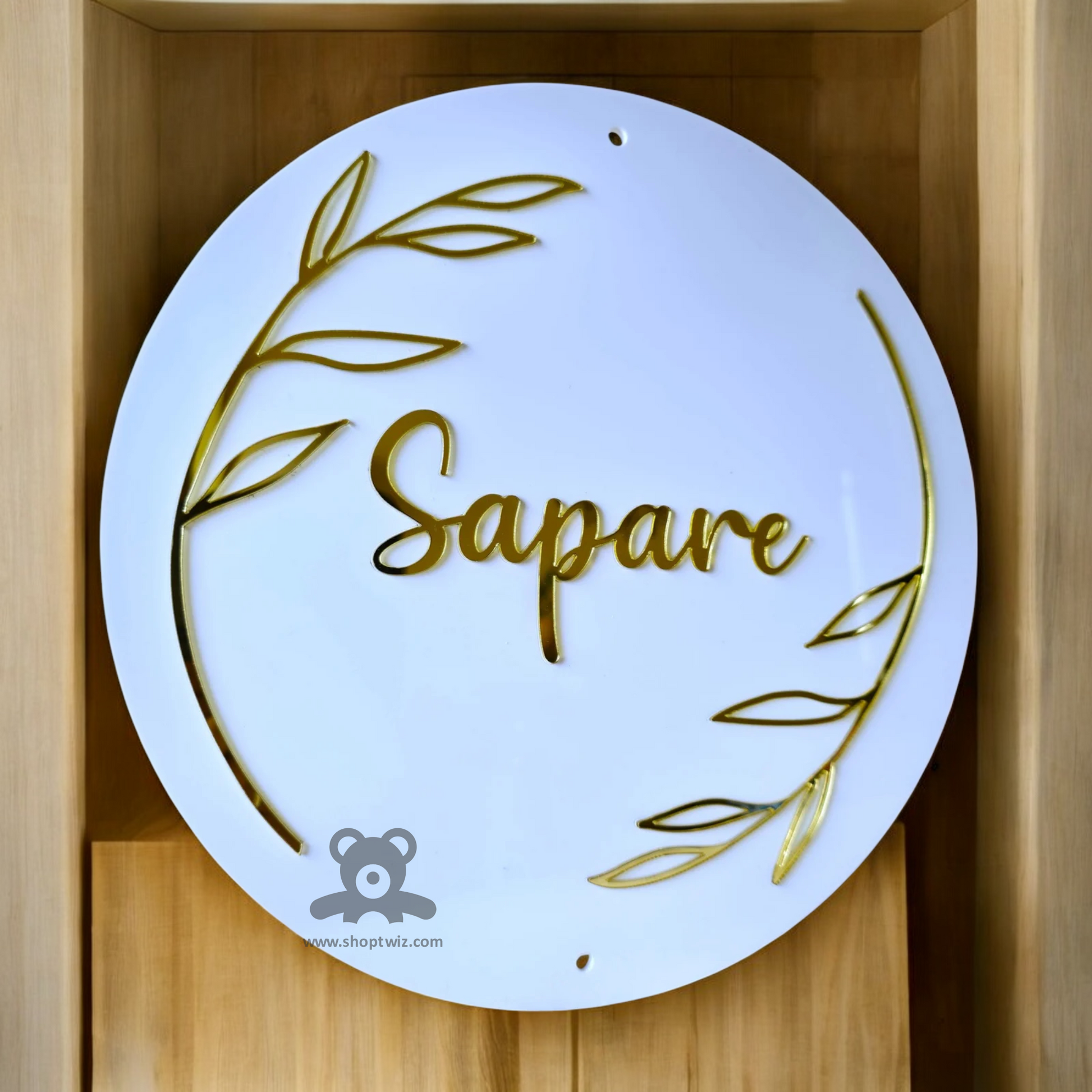 ShopTwiz Curve Rectangle White and Black Acrylic Name Plate for House and Office