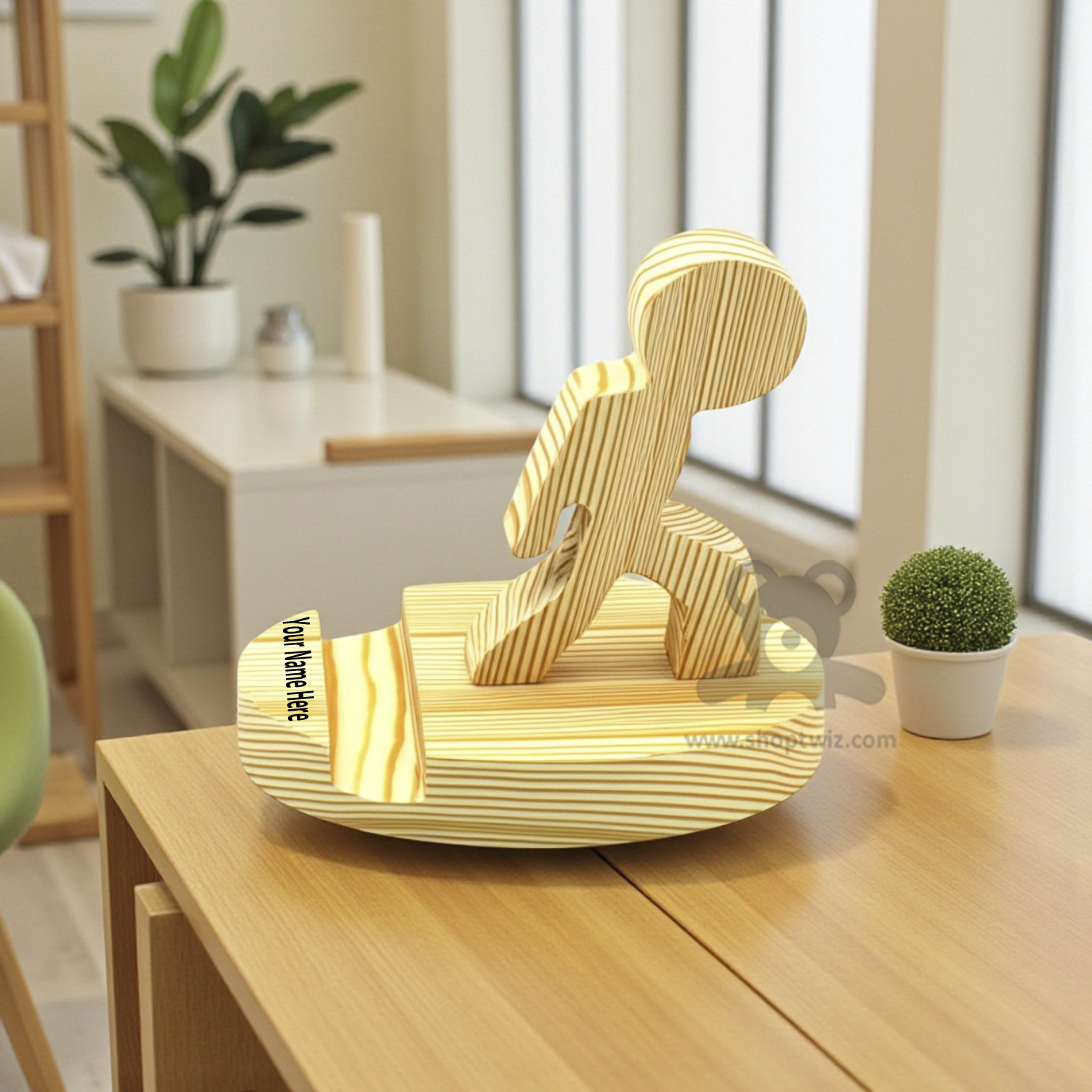 ShopTwiz Customized Boy-Shaped Wooden Mobile Stand – Personalize with Logo or Name | Unique Corporate Gift