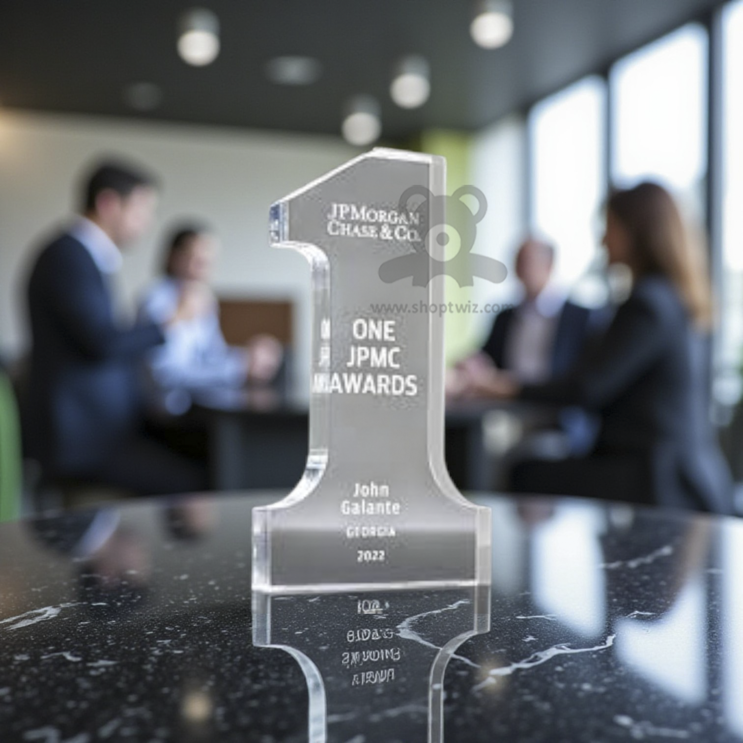 ShopTwiz Customized Number Acrylic Award – Personalize with Logo or Name | Elegant Corporate Recognition Gift