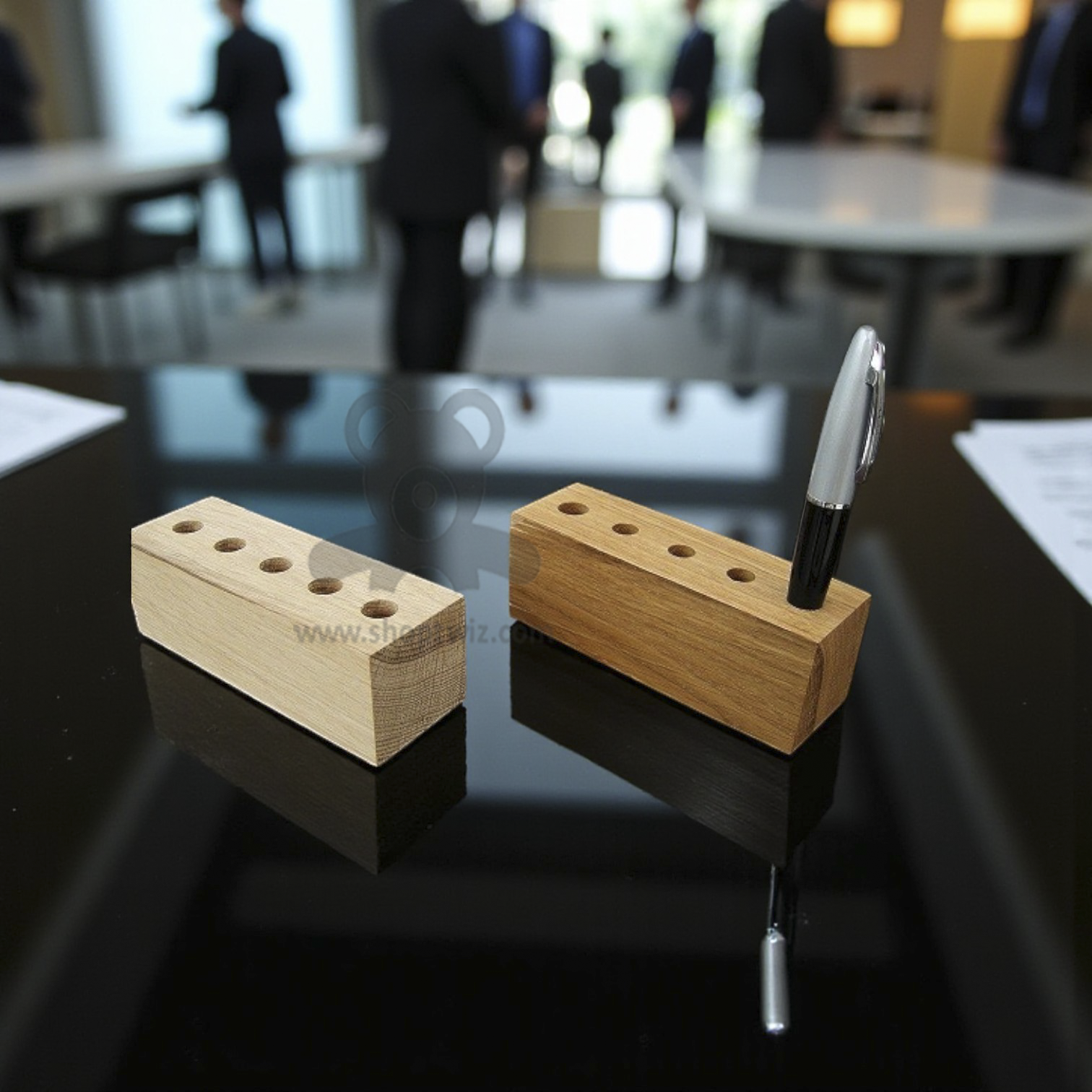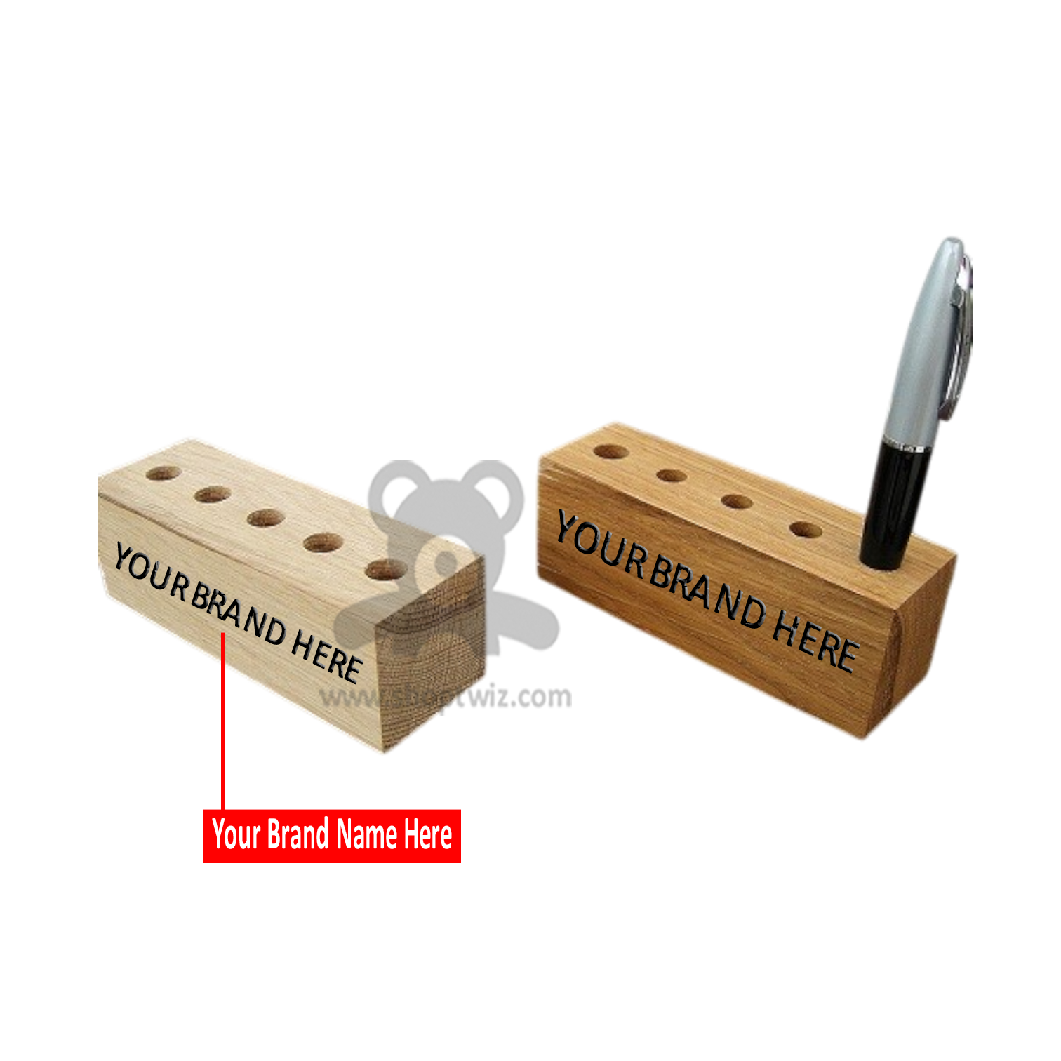 ShopTwiz Customized Wooden Pen Stand – Personalize with Logo or Name | Corporate Desk Gift