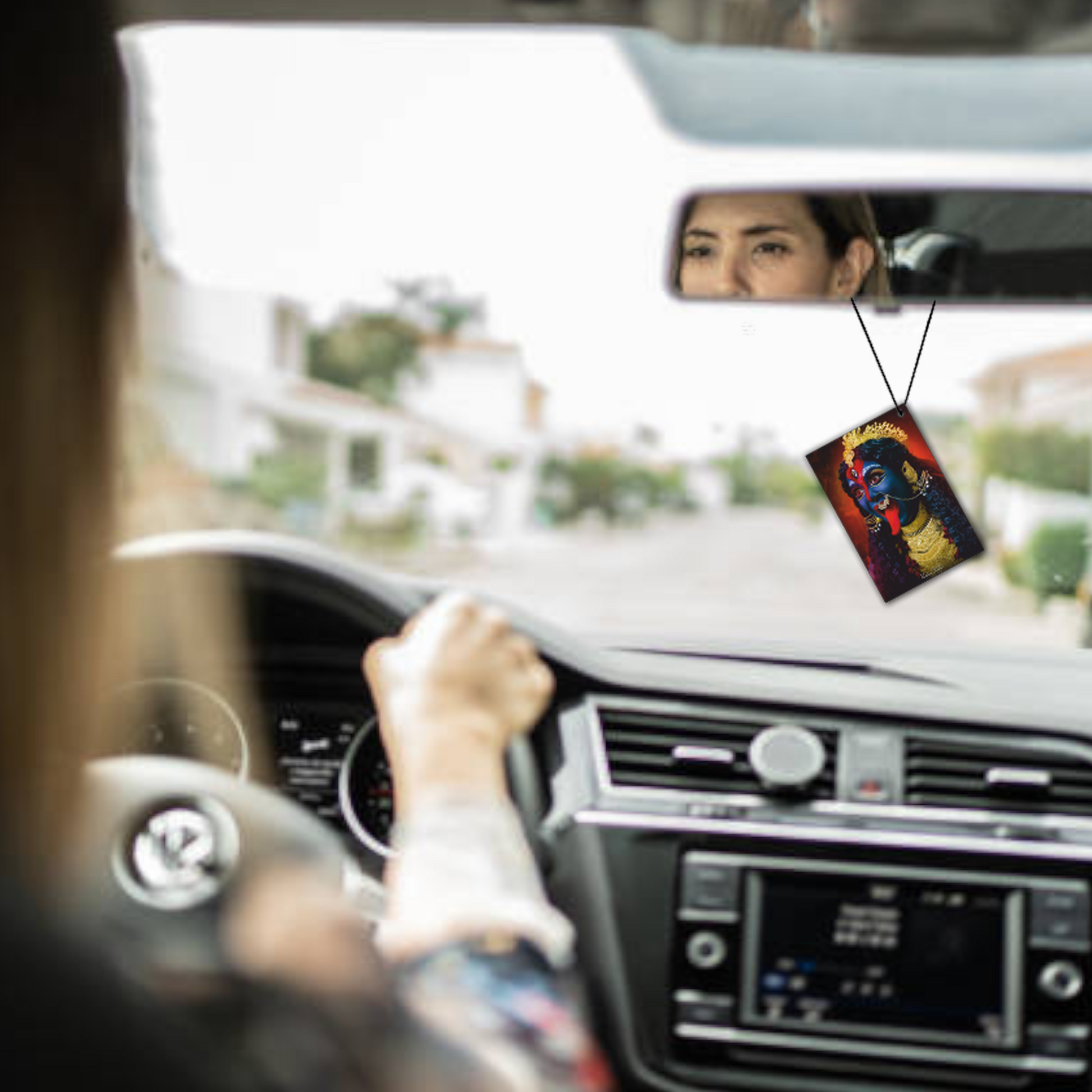 Embrace the fierce grace and divine protection of Kali Mata with the ShopTwiz Divine Hanging Car Decorative. Symbolizing strength, transformation, and fearlessness, this sacred charm invokes the powerful energy of the goddess to protect your path and purify your surroundings. A perfect blend of spiritual depth and visual elegance for your car.