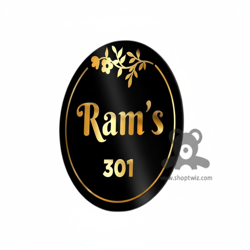 The ShopTwiz oval name plate features a sleek black acrylic base paired with elegant golden lettering, creating a sophisticated and timeless design for homes and offices. Its durable construction ensures lasting clarity and visibility, while the oval shape adds a refined aesthetic appeal. Ideal for enhancing entrances with professional and stylish identification.