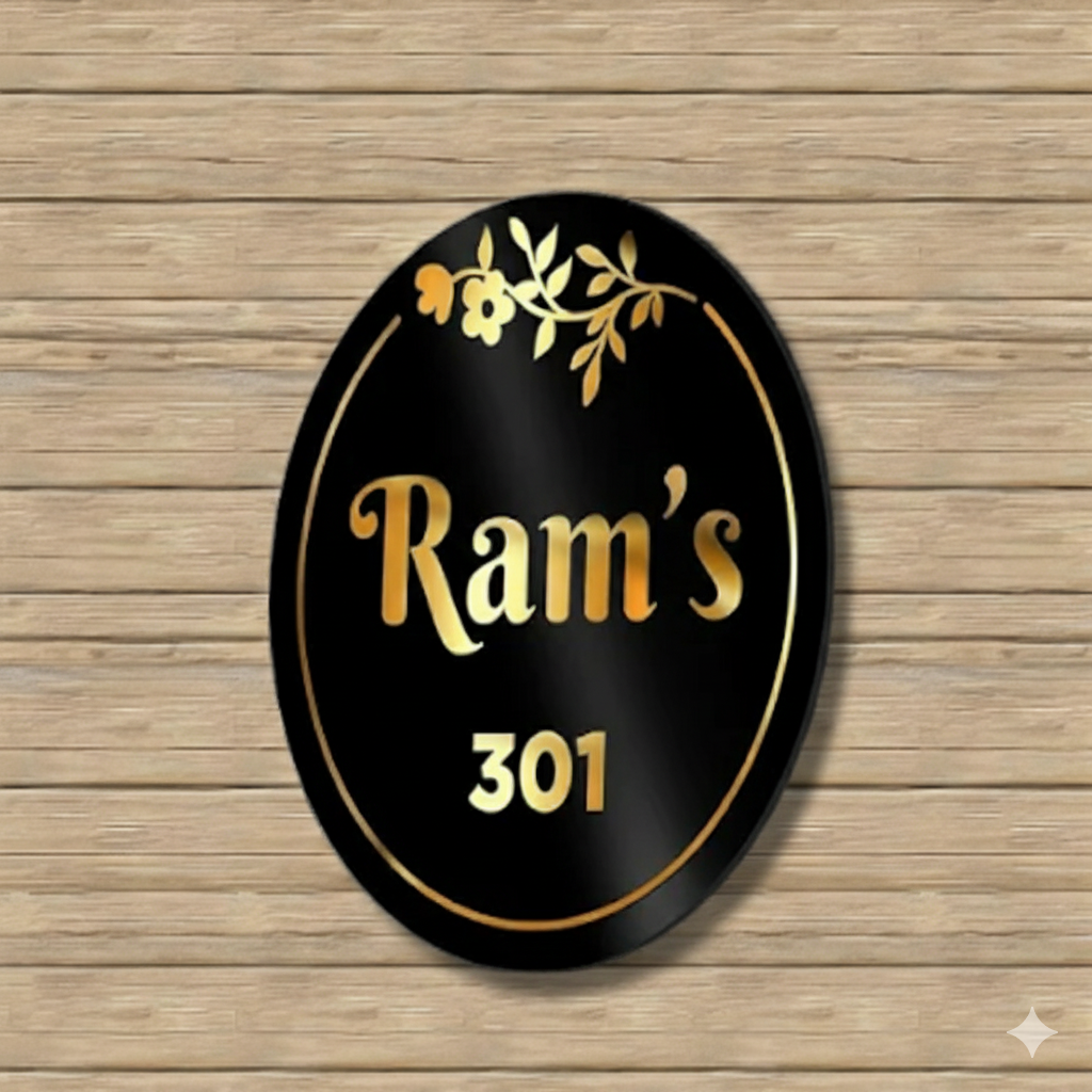 ShopTwiz Oval Black Acrylic Golden Letter Name Plate for House and Office