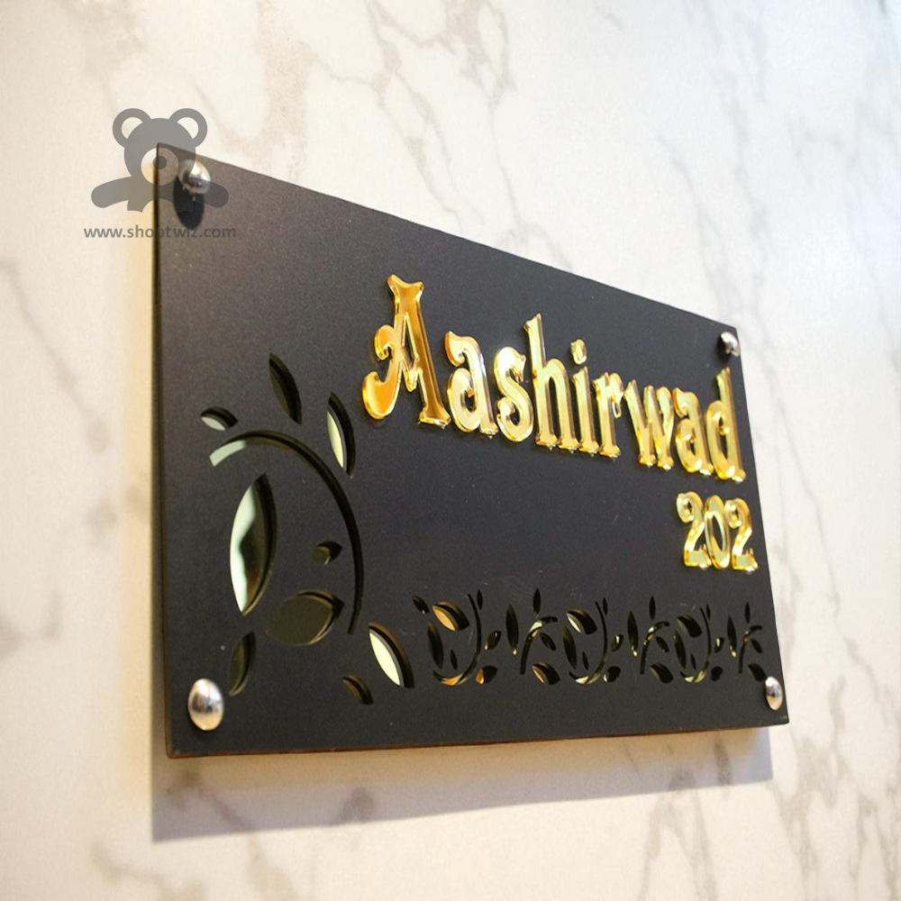 ShopTwiz Rectangle Black Acrylic Golden Letter Name Plate for House and Office