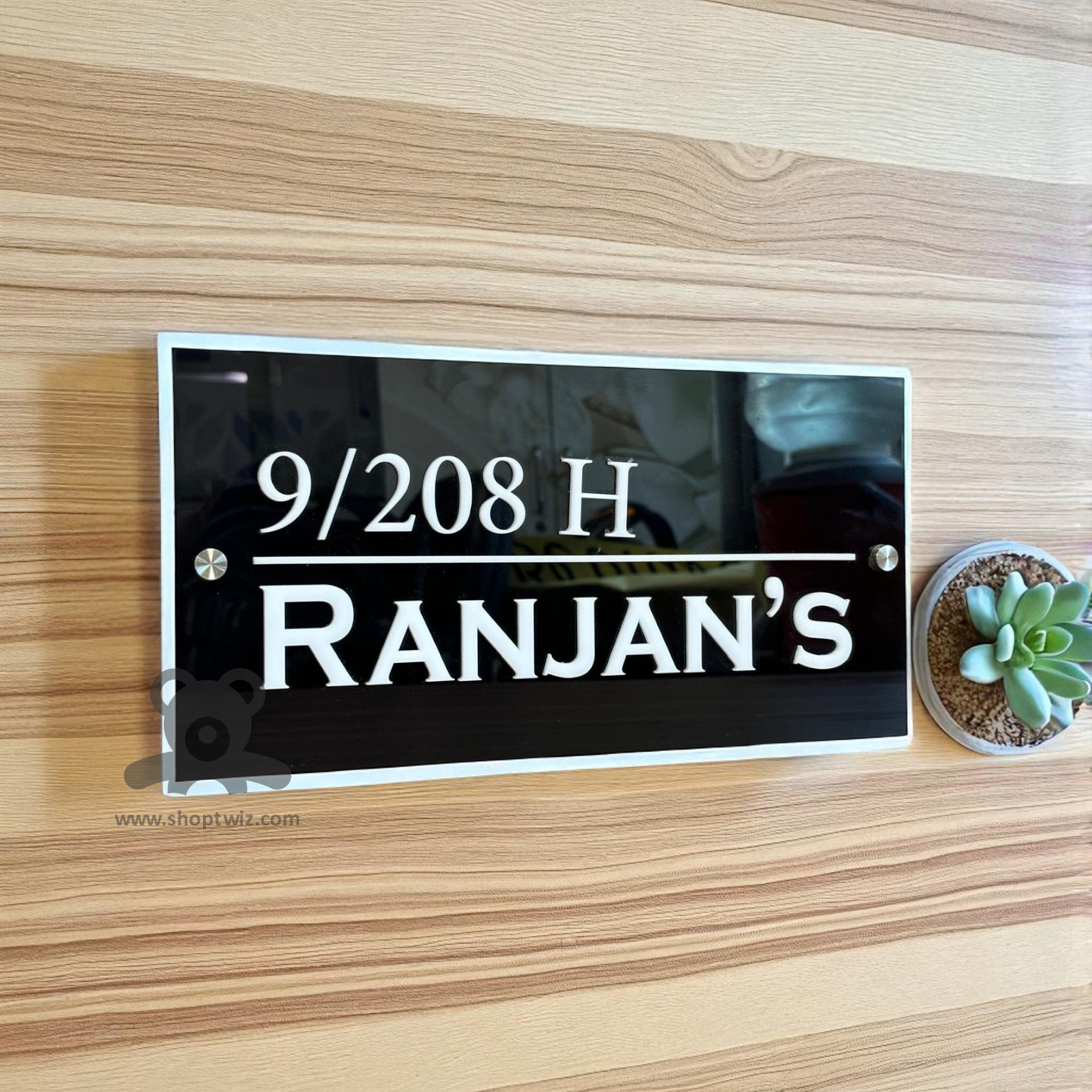 ShopTwiz Rectangle Black Acrylic White Letter And Border Name Plate for House and Office
