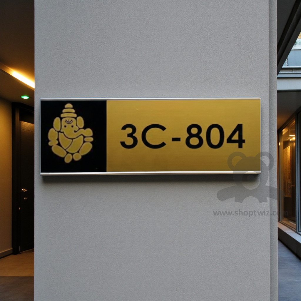 ShopTwiz Rectangle Black and Golden Ganesh Black Letter Name Plate for House and Office
