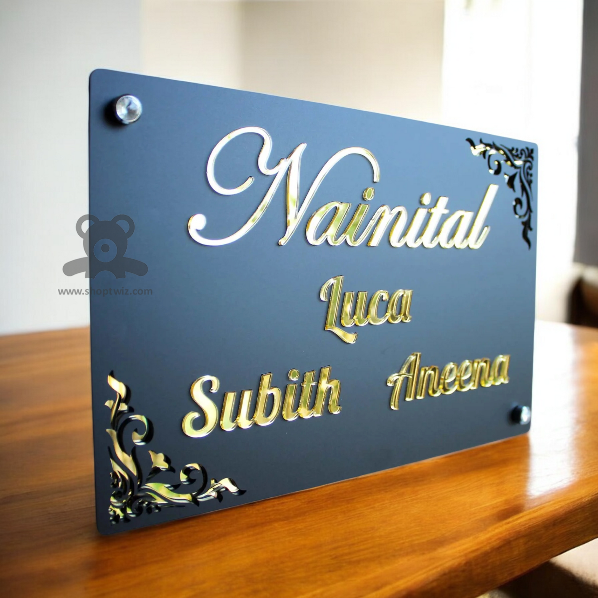 ShopTwiz Rectangle Black Design and Golden Letter Name Plate for House and Office