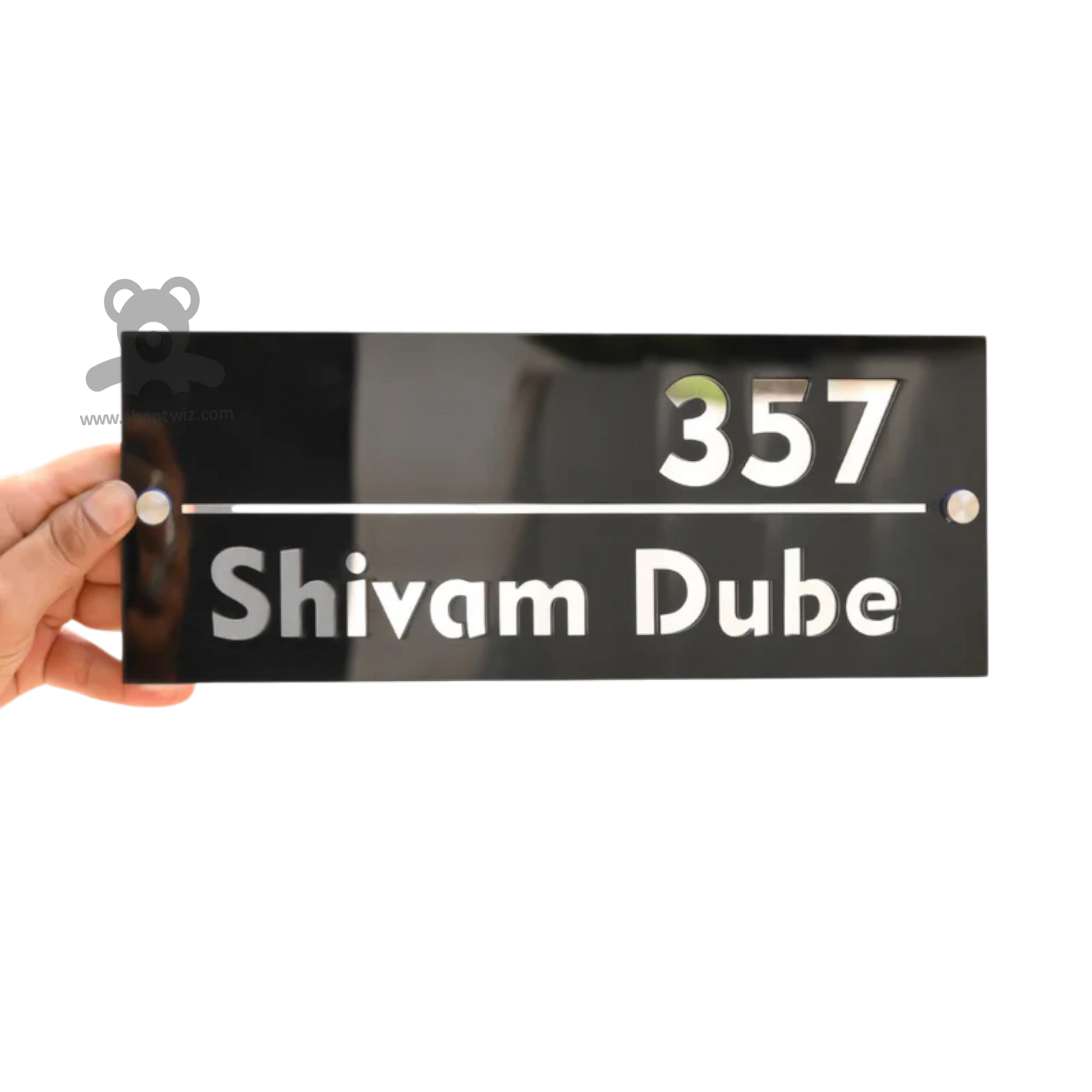The ShopTwiz Rectangle Name Plate features a sleek black background paired with transparent lettering, delivering a contemporary and minimalist aesthetic suitable for homes and offices. Its rectangular shape ensures clear visibility of names or addresses while maintaining an elegant, modern appeal. Designed for durability, this name plate offers a subtle yet sophisticated accent to any entrance.