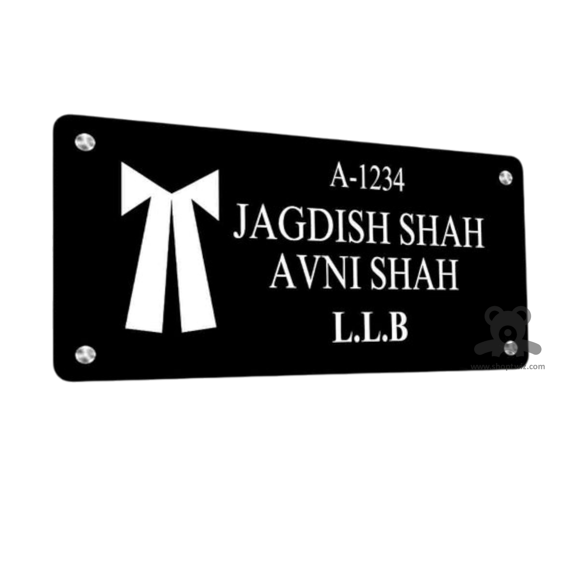 ShopTwiz Rectangle Black White Advocate and Letter Name Plate for House and Office
