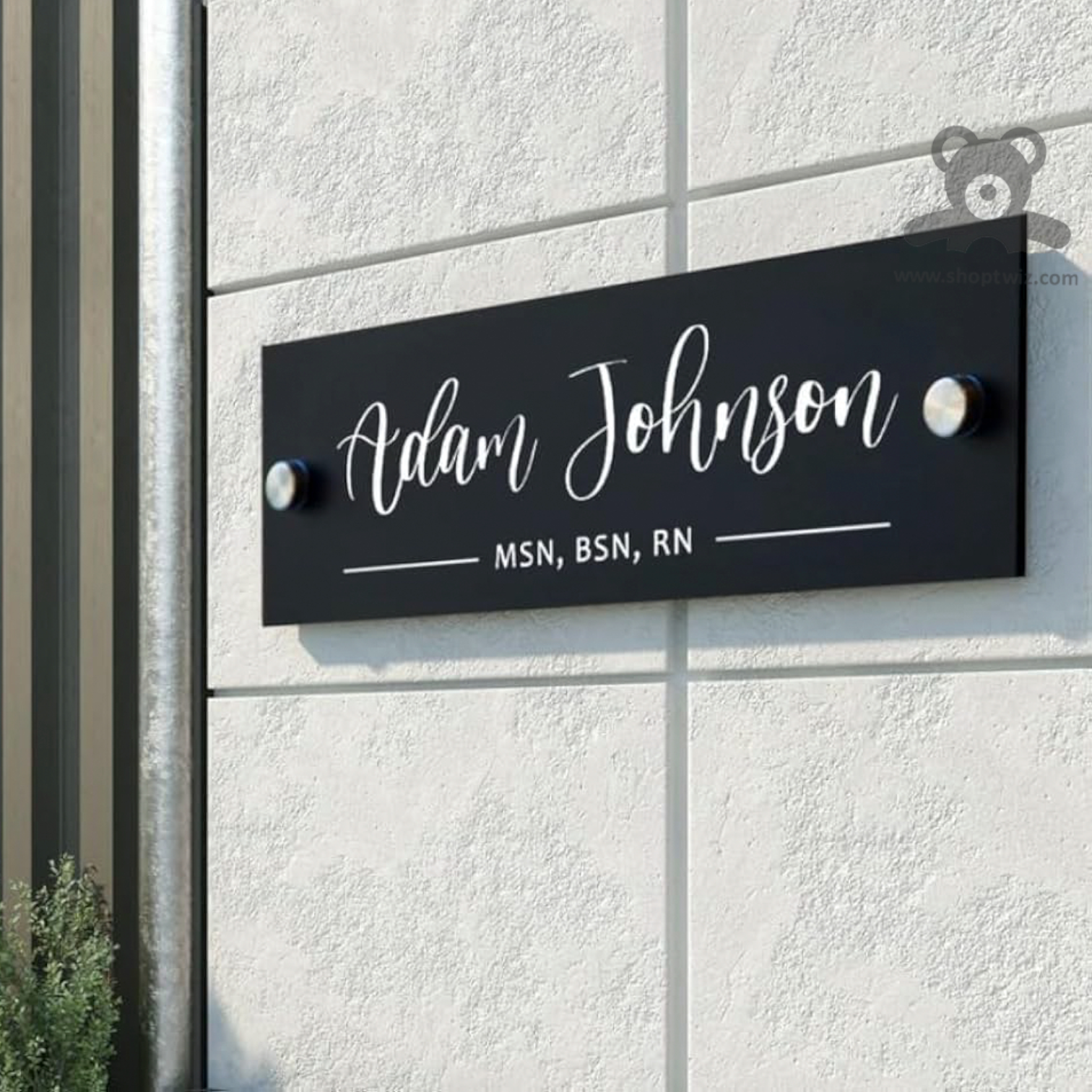 The ShopTwiz Rectangle Black White Letter Name Plate delivers a sleek and modern identification solution for homes and offices. Featuring crisp white lettering on a bold black background, it ensures high visibility and a clean, professional appearance. Crafted for durability and simple installation, this name plate complements various architectural styles while providing a clear and stylish way to mark your space.