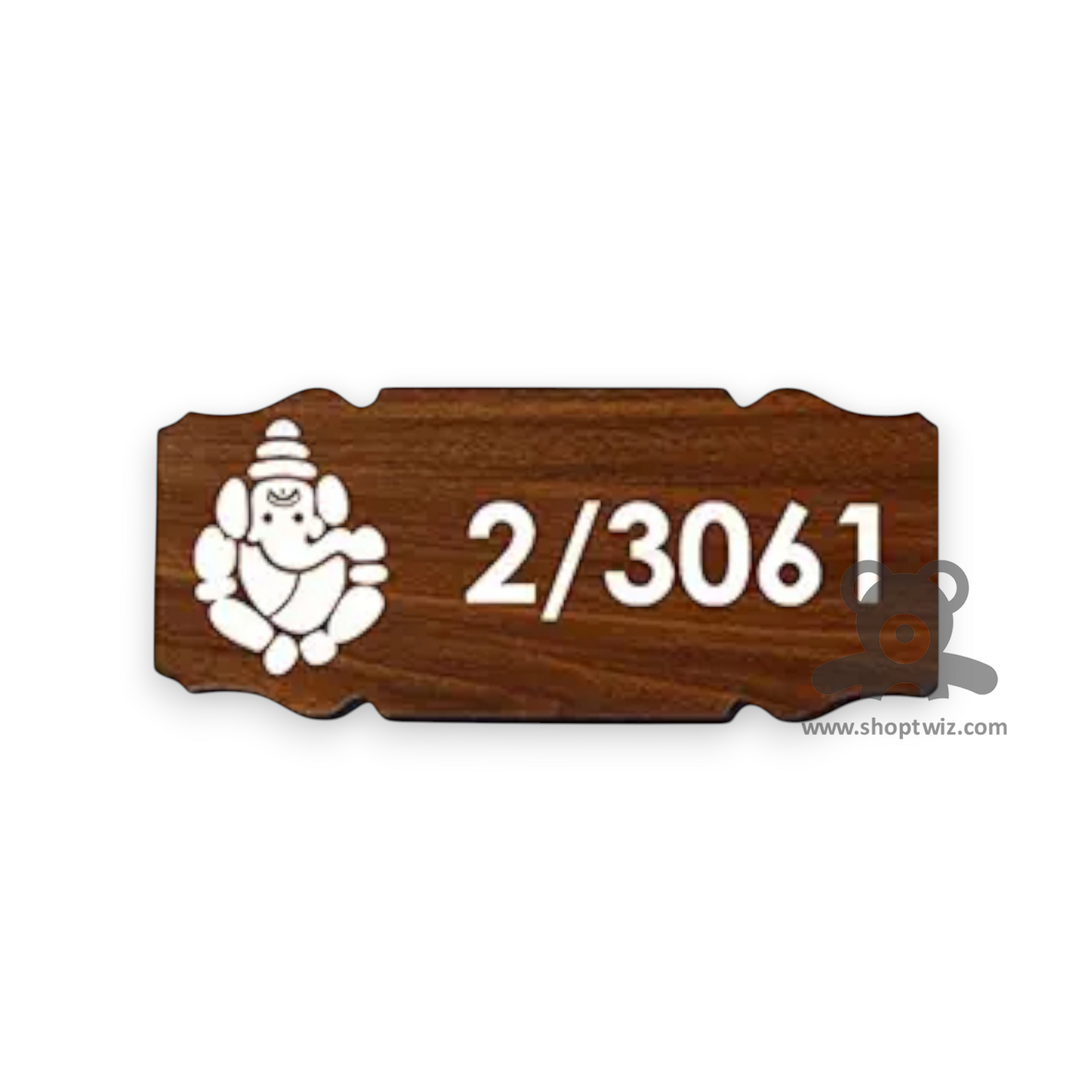 The ShopTwiz Rectangle Design Wood White Ganesh Letter Name Plate blends traditional symbolism with contemporary design. Featuring a detailed Ganesh motif alongside crisp white lettering on a natural wood base, it offers a durable and visually striking identification solution. Perfect for homes and offices, this name plate adds both spiritual significance and elegant style to any entrance.