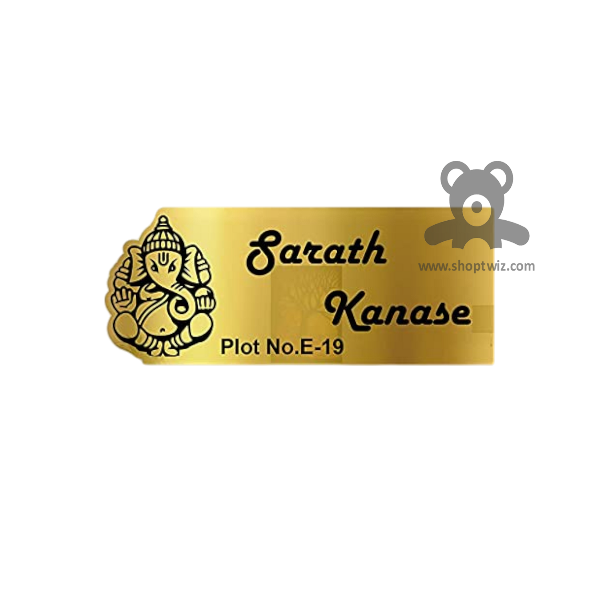 ShopTwiz Rectangle Golden Black Ganesh Letter Name Plate for House and Office