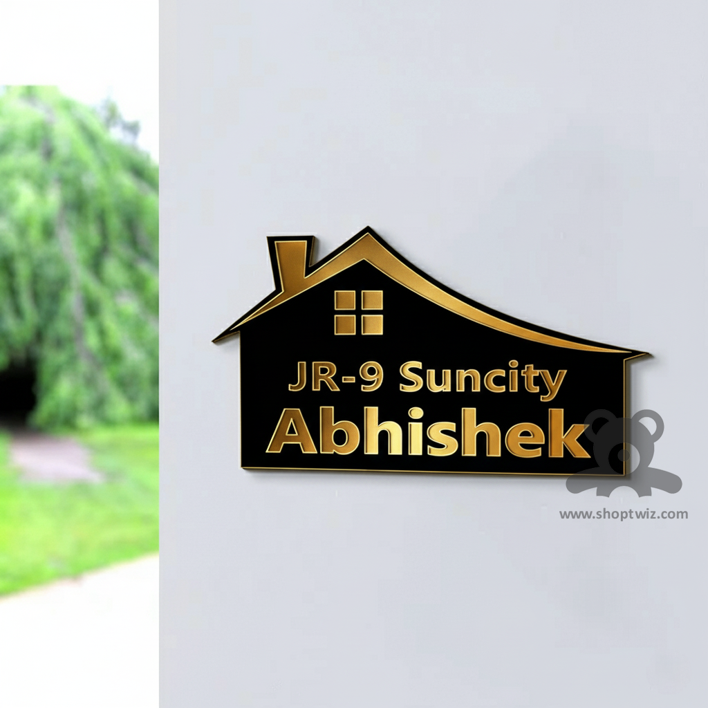 The ShopTwiz Rectangle House Black Golden Letter Design Name Plate presents a sophisticated black backdrop paired with striking golden lettering, perfect for identifying your home or office with elegance. Its durable construction ensures lasting appeal, making it a refined choice to enhance any entrance with clarity and style.