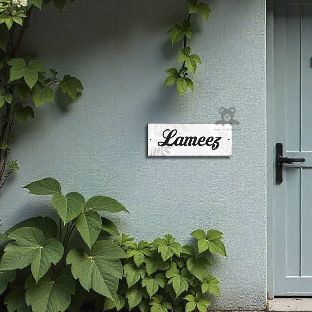 The ShopTwiz rectangular name plate features a natural wood base paired with a white acrylic panel and bold black lettering. Designed for both homes and offices, this name plate offers a perfect balance of classic