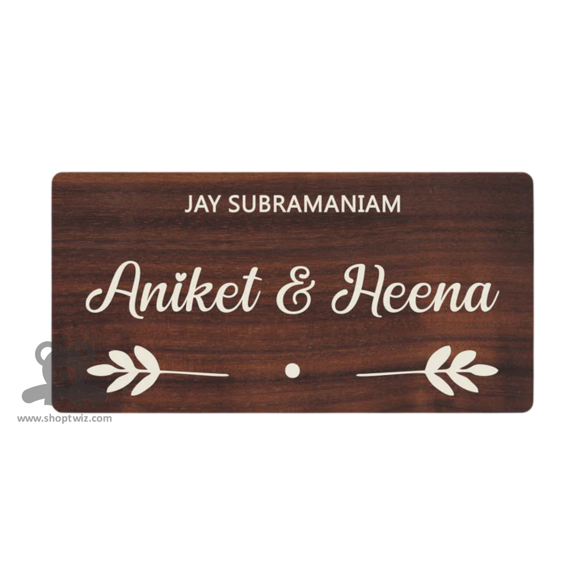 The ShopTwiz Rectangle Wood Name Plate features elegant white lettering combined with a detailed Ganesh motif, crafted on premium wood for a blend of tradition and durability. Ideal for houses and offices, this name plate offers clear visibility and a culturally meaningful design, enhancing your entrance with a sophisticated and spiritual touch. Its sturdy construction ensures lasting appeal in any setting.
