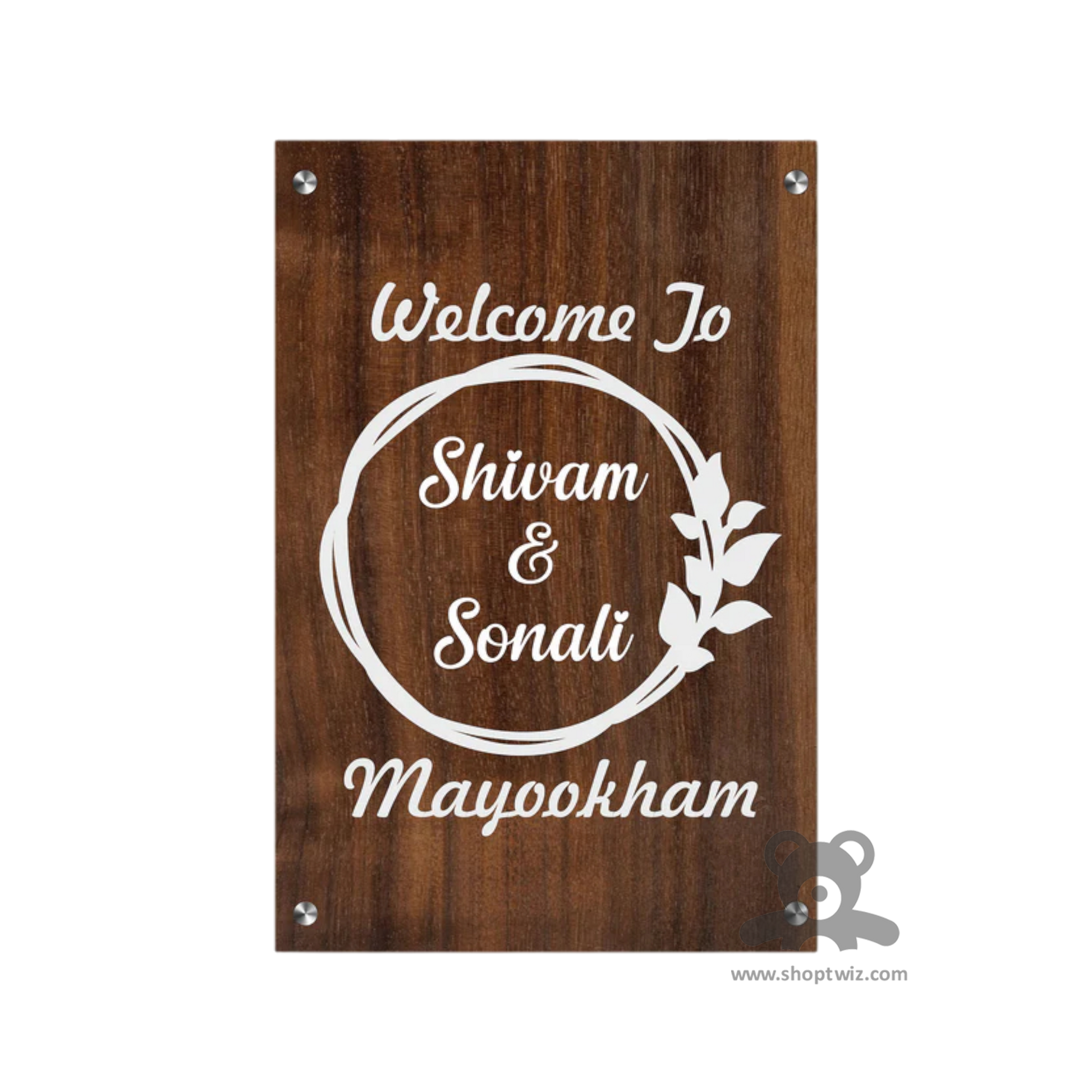 ShopTwiz Rectangle Wood White Letter and Design Name Plate for House and Office