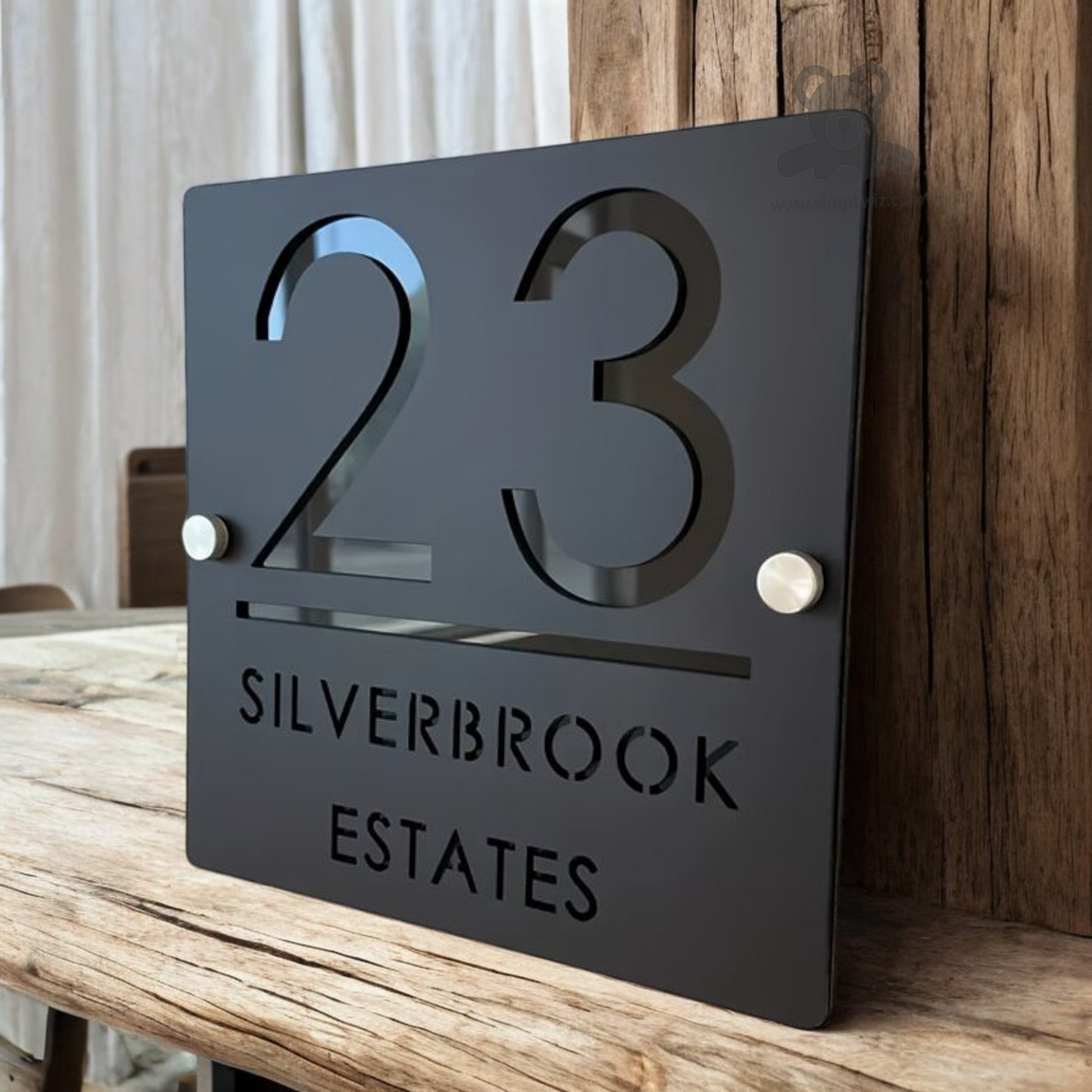 ShopTwiz Square Black Acrylic And Dark Black Letter Name Plate for House and Office