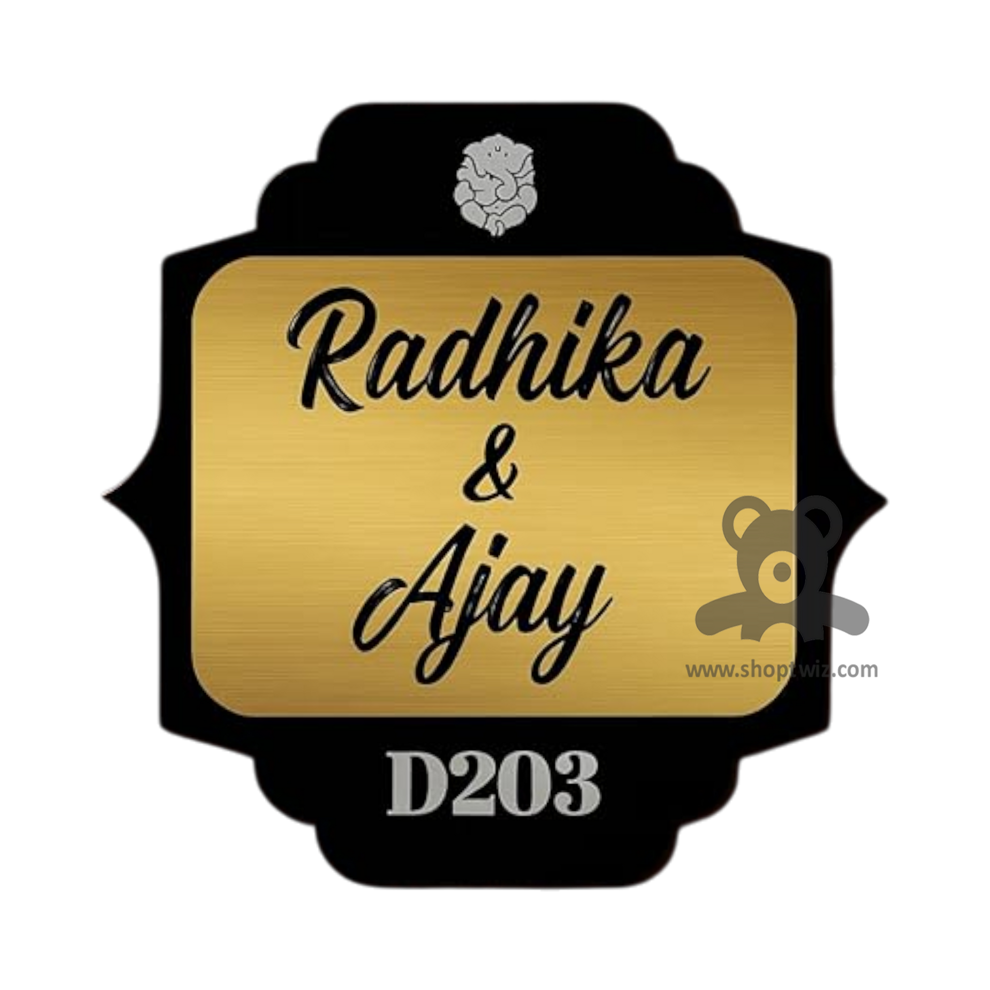 ShopTwiz Square Design Black Golden Acrylic Black Letter Name Plate for House and Office