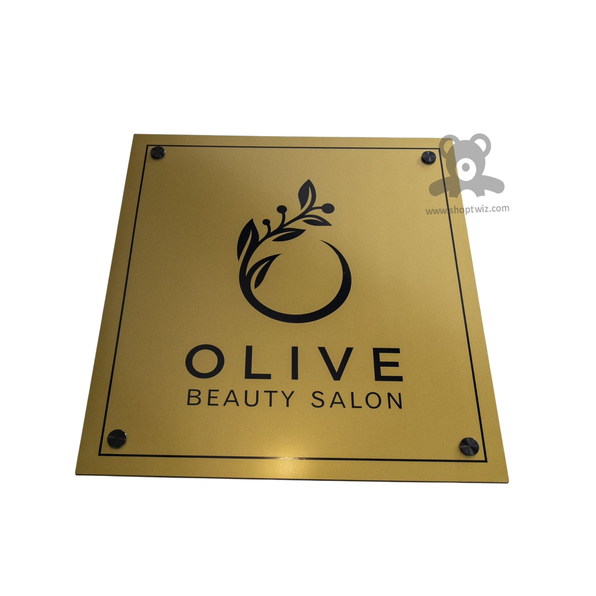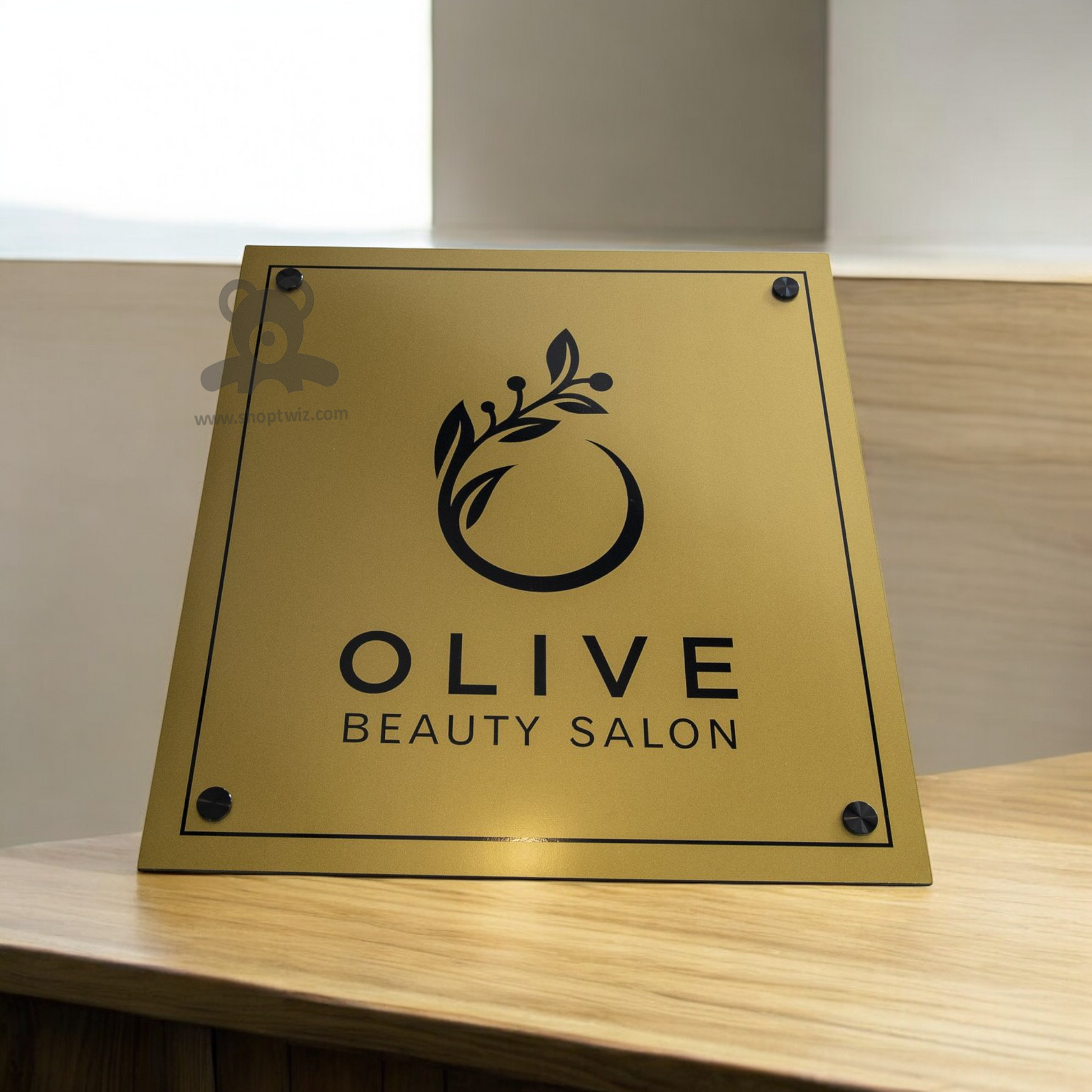 ShopTwiz Square Golden Acrylic Black Letter And Design Name Plate for House and Office