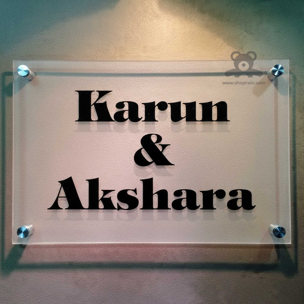 ShopTwiz Square Transparent Acrylic Black Letter Name Plate for House and Office