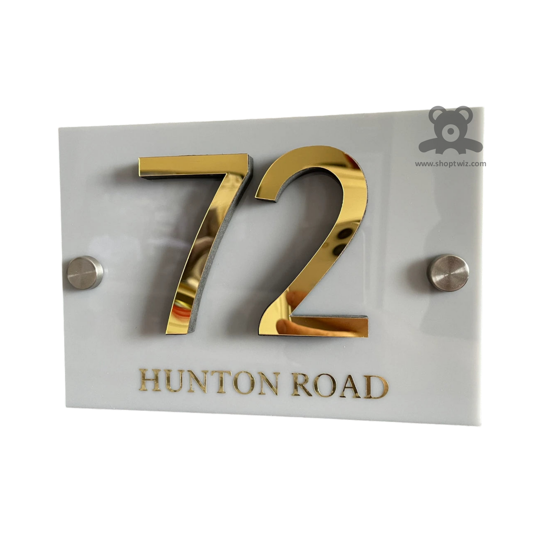 ShopTwiz Square White Acrylic and Golden Letter Name Plate for House and Office