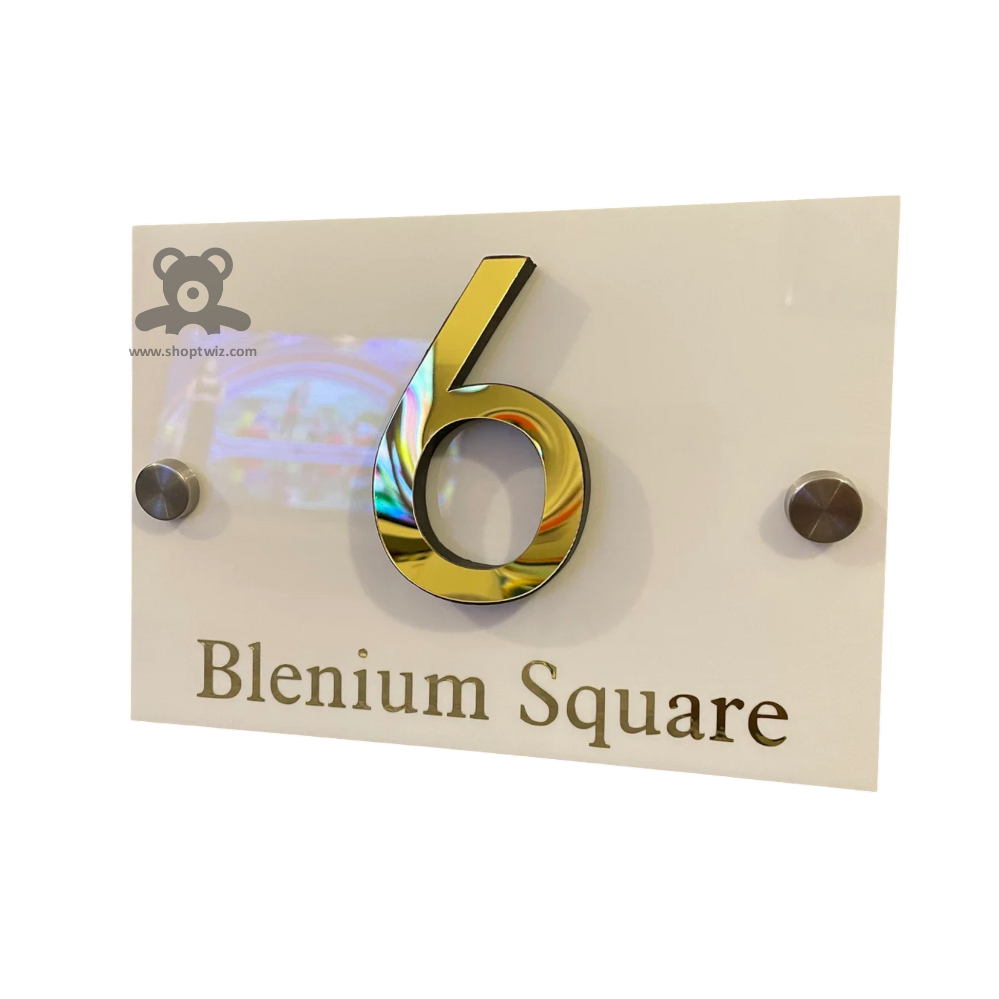 The ShopTwiz Square White Acrylic Name Plate features a clean white acrylic base paired with elegant golden lettering, delivering a crisp and sophisticated look suitable for both homes and offices. Designed for durability and high visibility, this name plate clearly showcases your name or designation. Its modern square shape blends seamlessly with various décors, adding a refined touch to any entrance with professional appeal.