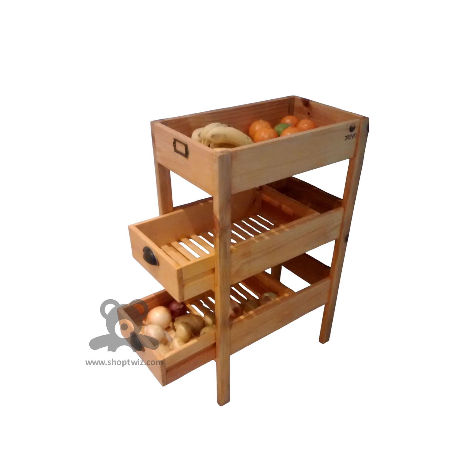 ShopTwiz Wooden Fruit Storage Tray with 3 Boxes
