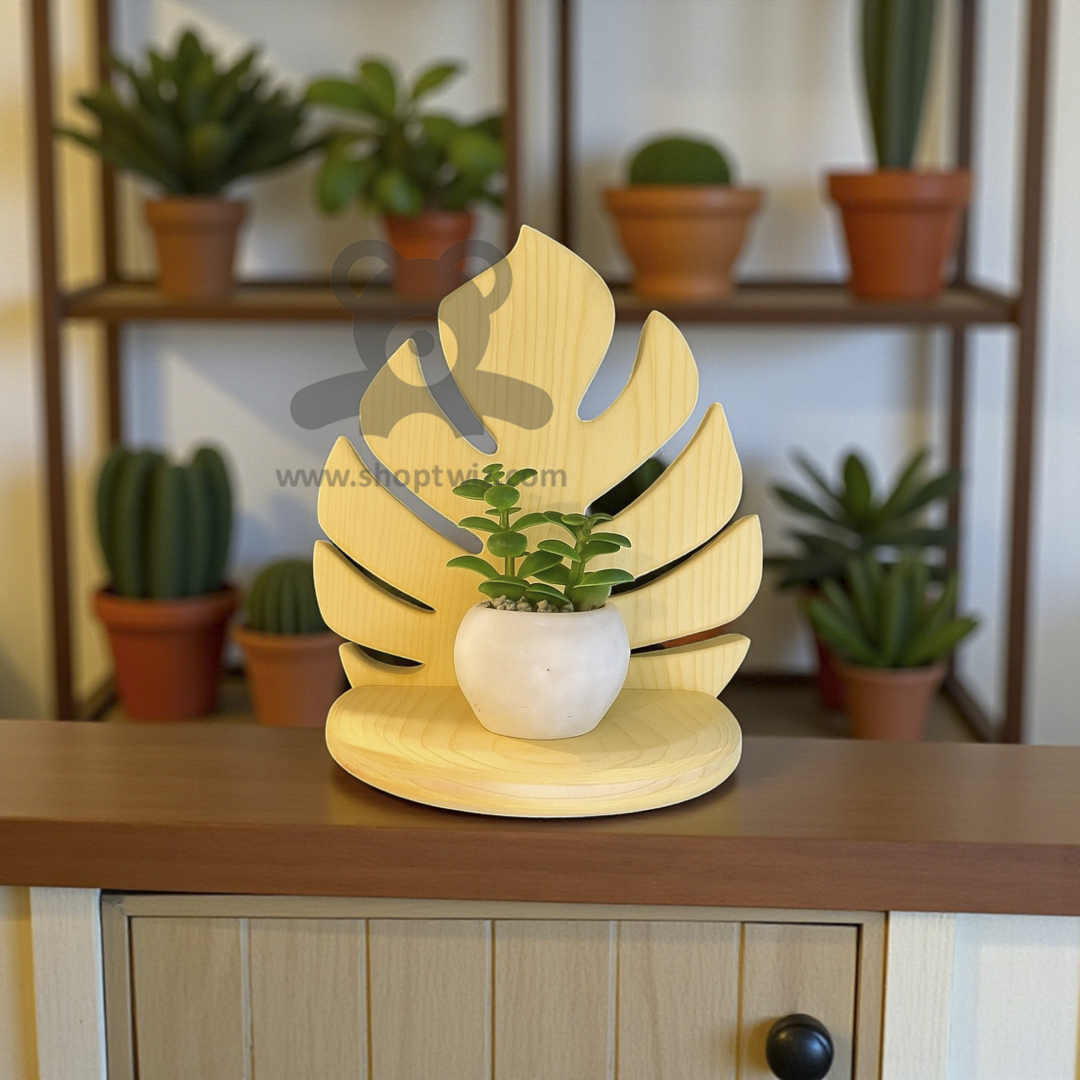 ShopTwiz Wooden Plant Stand Hanging Shelf Monstera