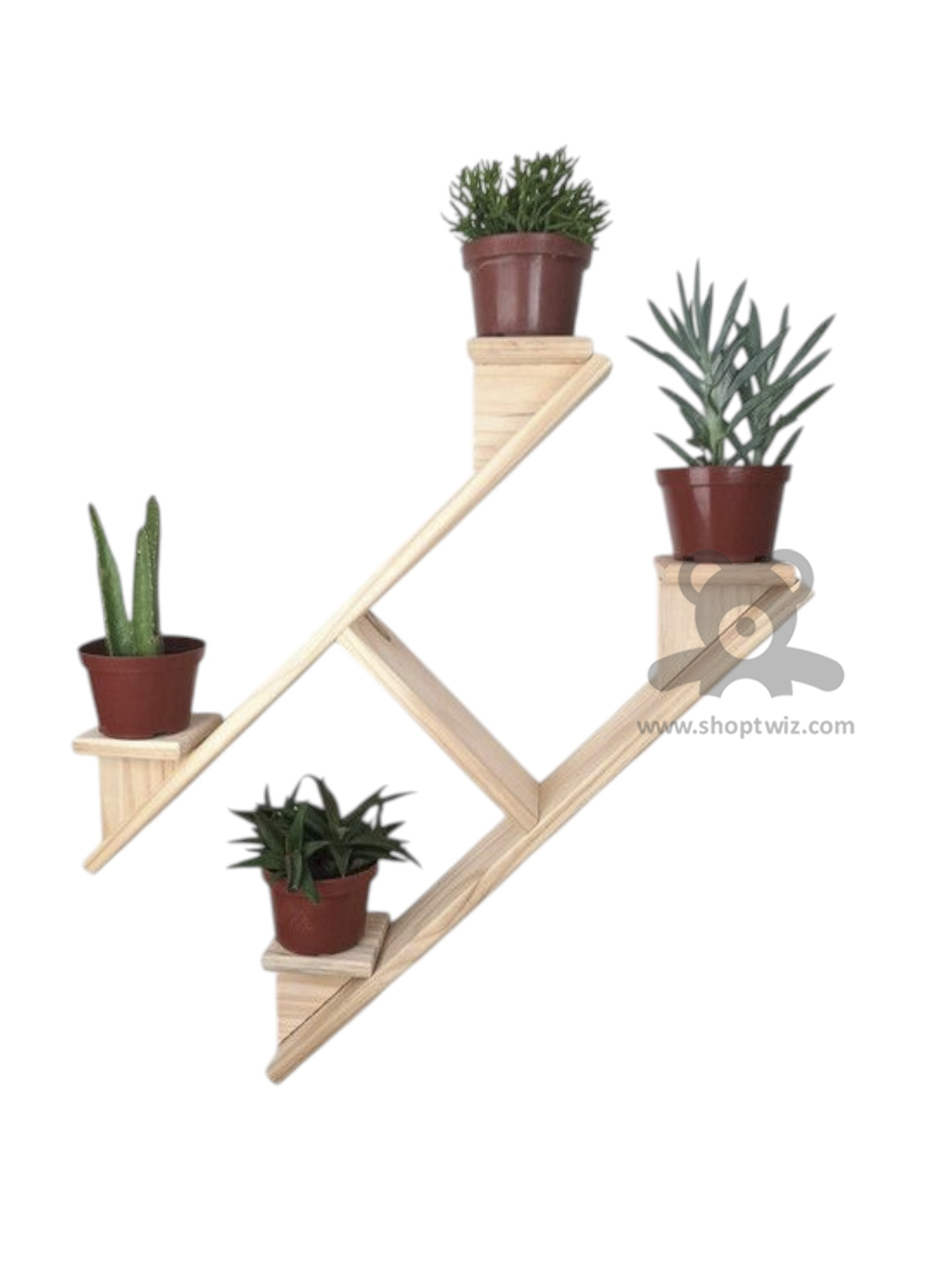 ShopTwiz Wooden Wall Decorative 4-Pot Stand with Wood Design
