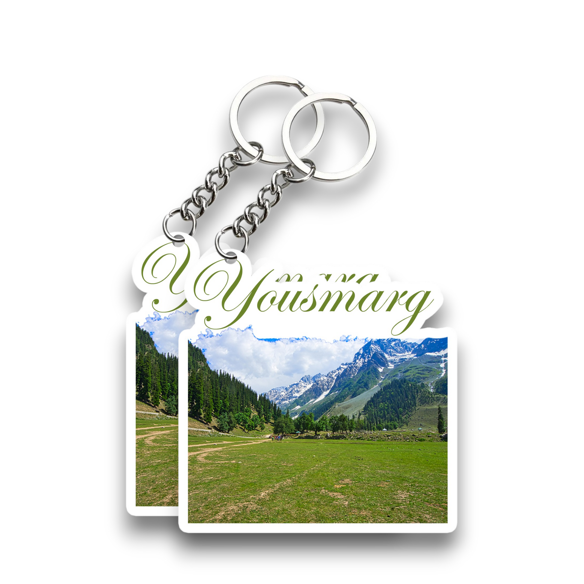 Capture the breathtaking beauty of Yousmarg with this elegant key chain set. Made from premium MDF and measuring approximately 5 cm, each key chain showcases the serene landscapes and peaceful charm of this hidden gem in Kashmir. Lightweight, durable, and artistically crafted, this set of 2 is ideal for your keys, bags, or as a travel memento. Whether you're reminiscing about a tranquil getaway or sharing a piece of the valley with someone special, the Yousmarg Key Chain set is a perfect keepsake.